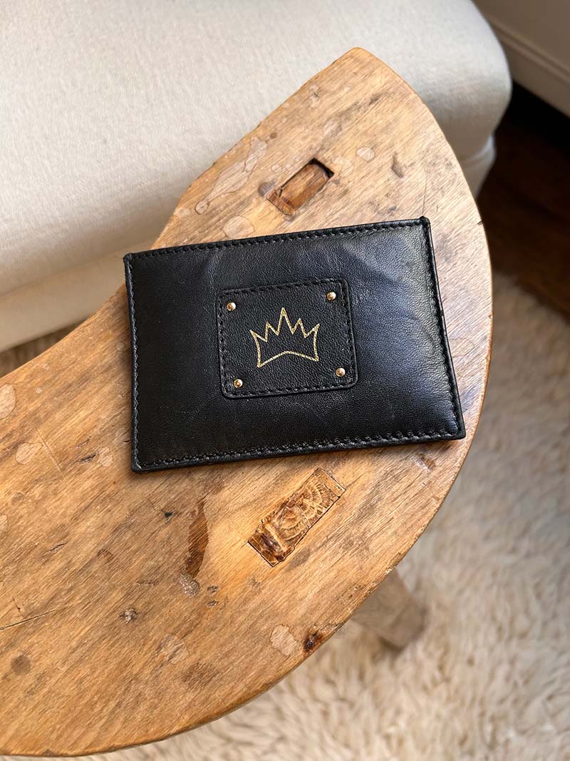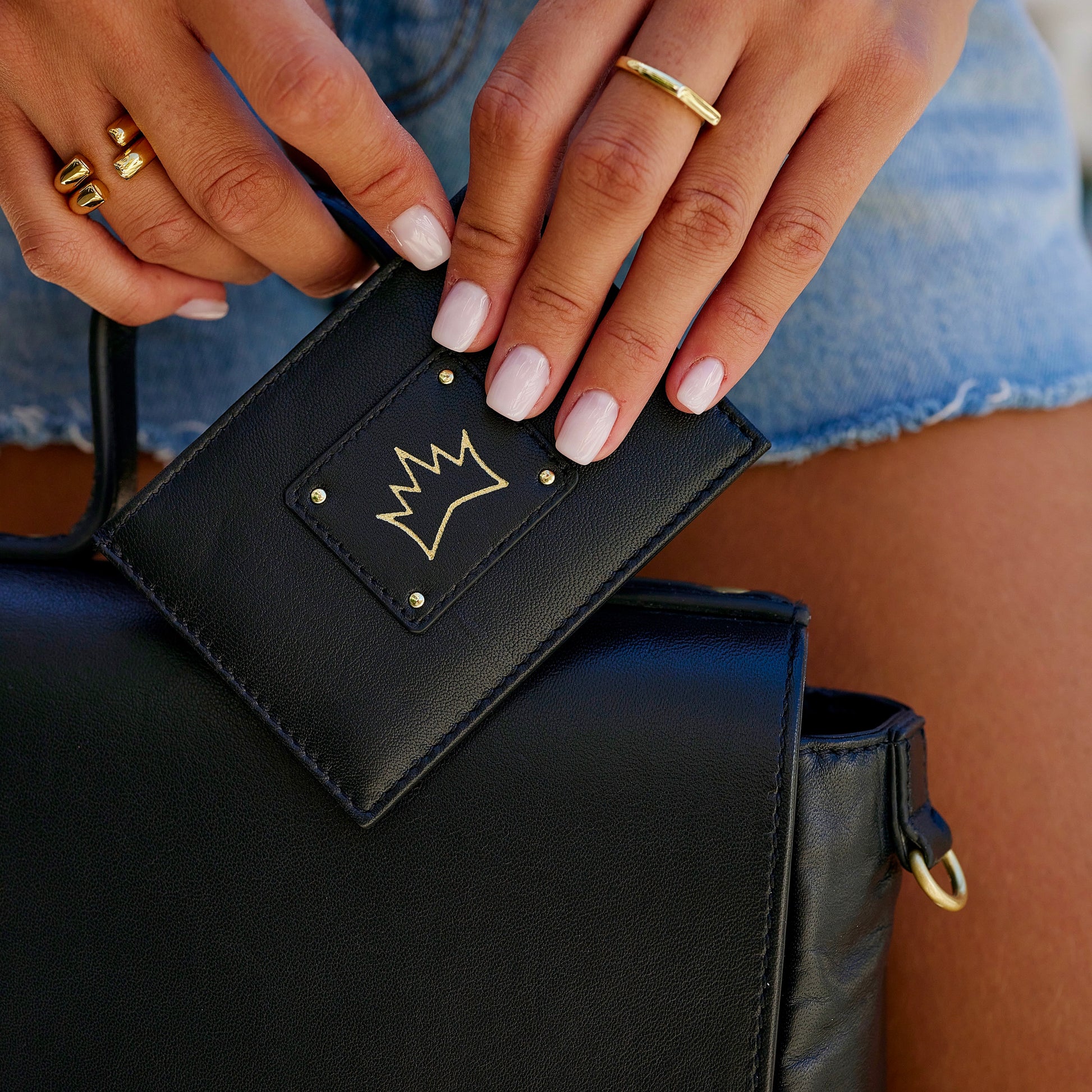 The Crown Logo Card Case in Black is crafted from lambskin leather with brushed gold details. A chic card holder that complements our bags and makes a great gift.