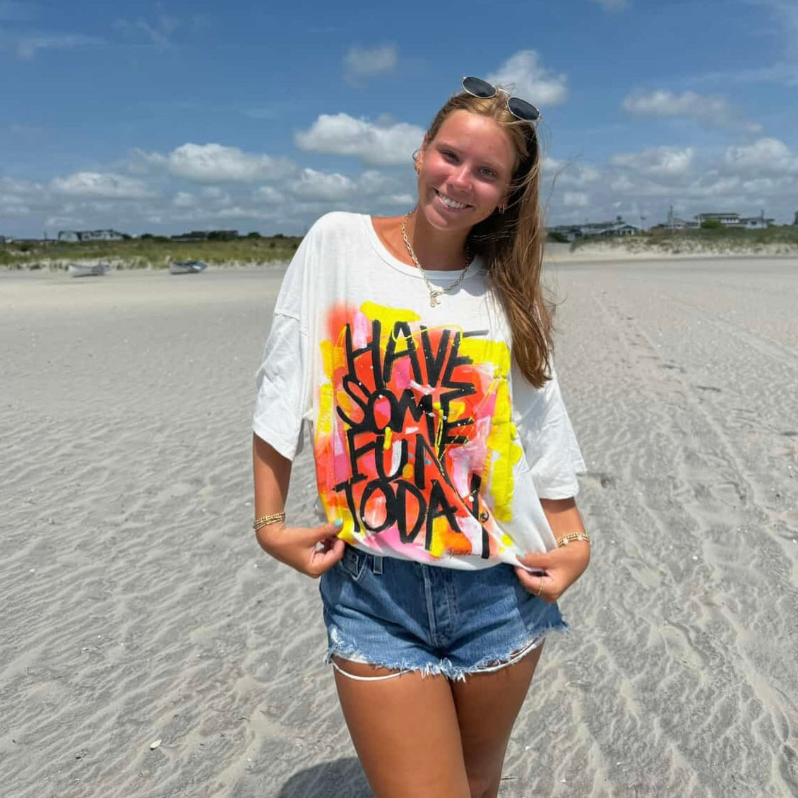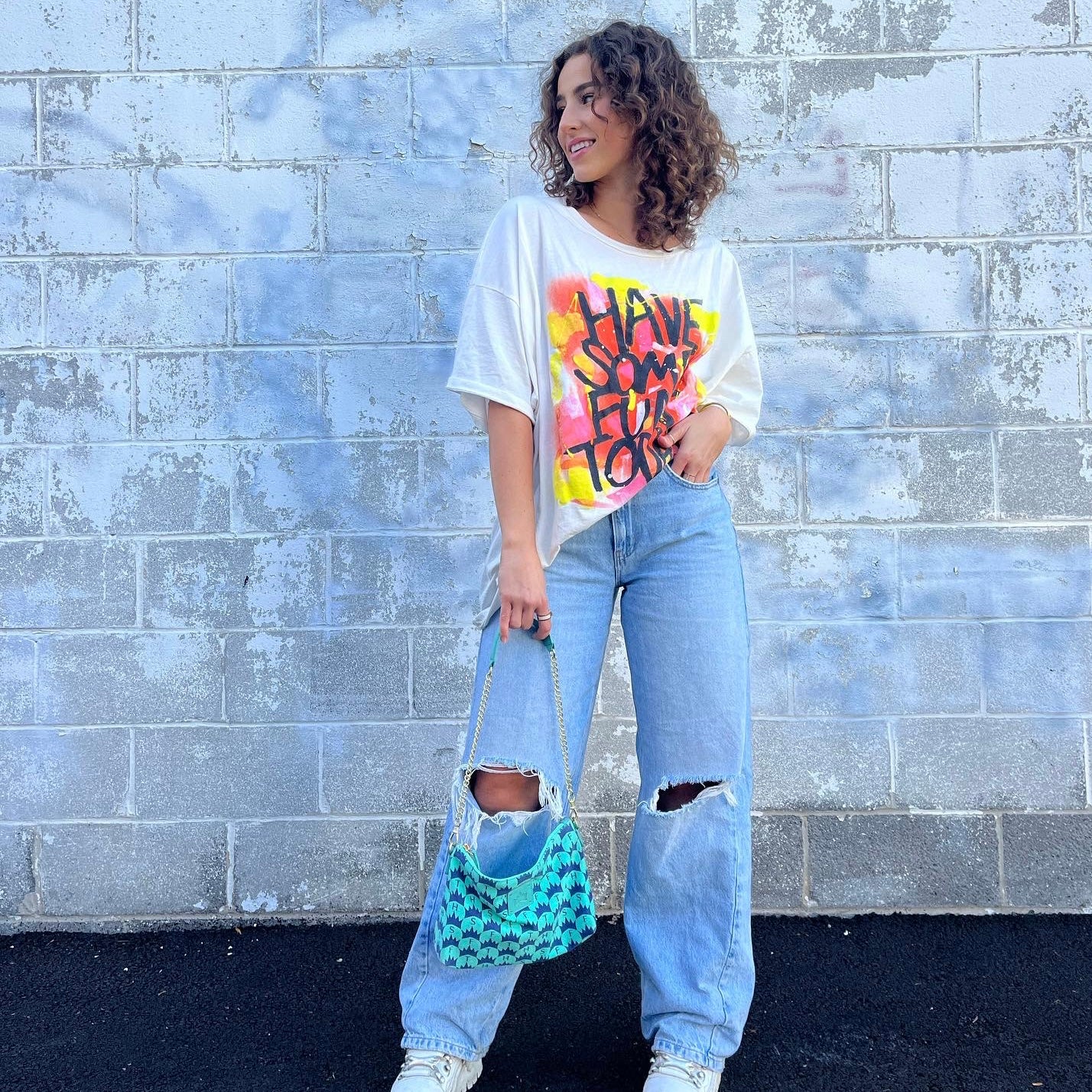 Obsessed with this T-shirt. It is so soft and the perfect amount of oversized. I absolutely love styling it with biker shorts and sneakers for an everyday look.