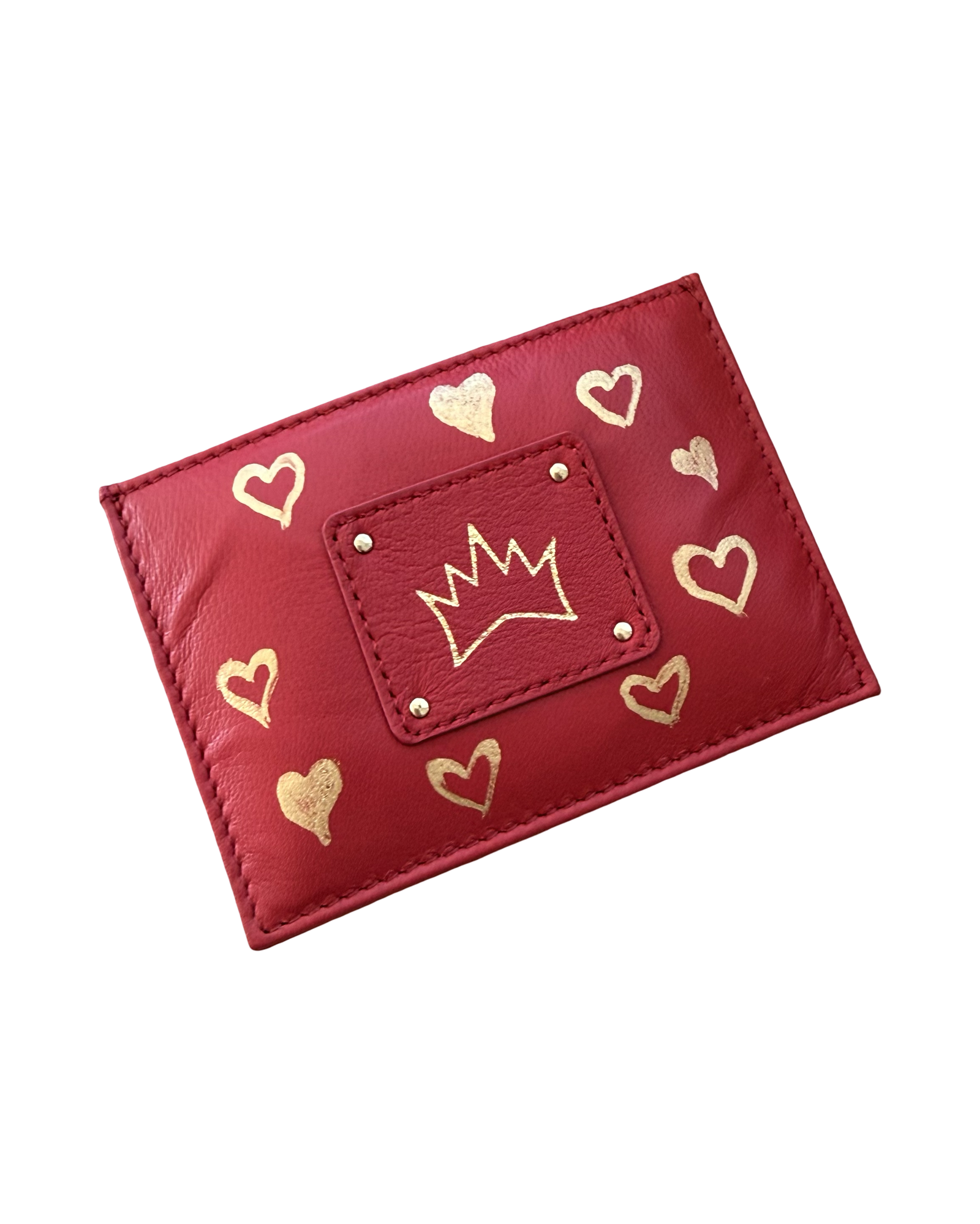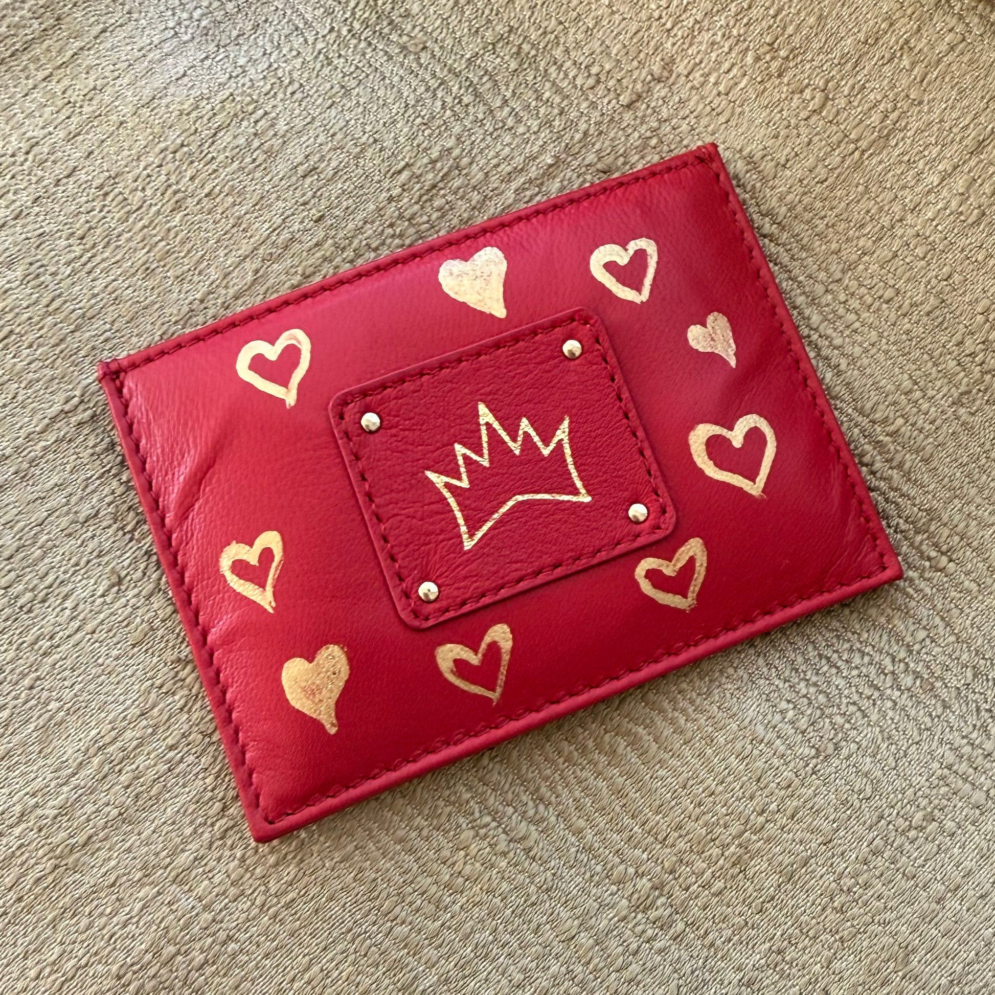 "One Collection" Handpainted Card Case with Gold Metallic Hearts By Stephanie Rado Taormina